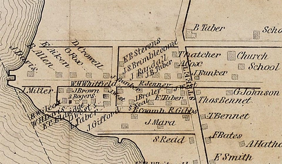 *Maps of Oxford village published in 1850, 1851, and 1855, show that there was no house on the lot at 11 Cherry Street during the time Manjiro lived in Fairhaven. There is no record of a house at 11 Cherry Street until it appears on the 1855 map with William Whitfield as the owner. This is after Manjiro had returned to Japan. Capt. Whitfield died next door at his residence, 13 Cherry Street, in 1886, where he lived with his wife, his daughter Sybil, his son-in-law Joseph Omey, and his granddaughter Albertina “Allie” Omey. Allie Omey owned the Whitfield house at 13 Cherry Street until her death in 1959.